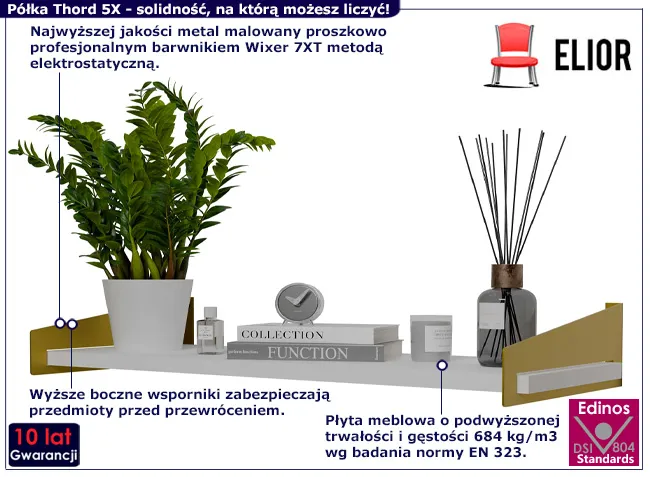 Dotyczy: Nowoczesna wisząca półka z metalowym stelażem złoty + czarny - Mizu 5X