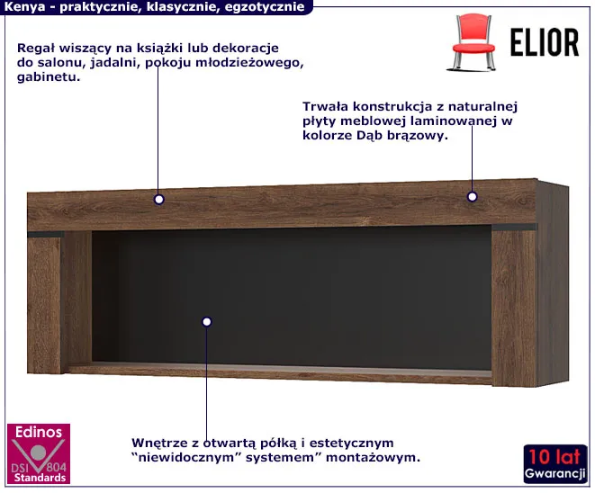 Regał ścienny Samar 10X jest częścią kolekcji Kenya marki Edinos Premium przeznaczonych do kompleksowej aranżacji mieszkania. Sprawdź naszą ofertę i skompletuj własny zestaw mebli z kolekcji Kenya marki Edinos Premium!