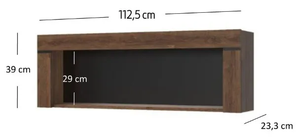 • Wymiary: wysokość: 39 cm, szerokość: 112,5 cm, głębokość: 23,3 cm.