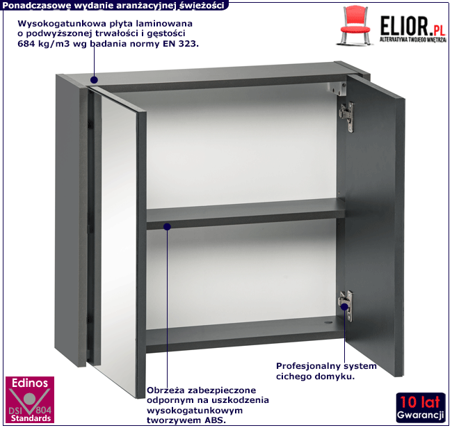 Cenisz sobie świeży, nowoczesny design? Jesteś miłośnikiem wyszukanych propozycji aranżacyjnych? Marka Elior z myślą o potrzebach klientów dołożyła wszelkich starań przy tworzeniu doskonałej kolekcji Madryt Antracyt, która zachwyca funkcjonalnością oraz oryginalnym stylem. Z pozoru prosta, a jednak niebanalna konstrukcja emanuje lekkością, naturalnością i nutką modernistycznego szyku, tworząc ponadczasowe wydanie aranżacyjnej świeżości. Madryt Antracyt to przemyślany projekt o niezliczalnie wielu walorach użytkowych, wpisujący się we wnętrza w wielu stylach aranżacyjnych.