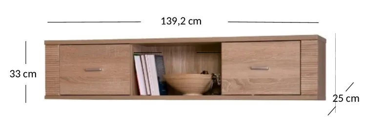 • Wymiary: wysokość: 33 cm, szerokość: 139,2 cm, głębokość: 25 cm.