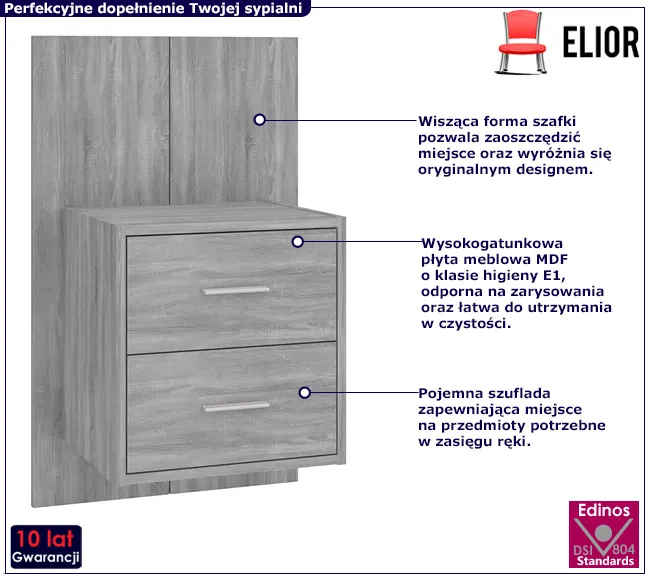 Dotyczy: Nowoczesna ścienna szafka nocna dąb sonoma - Toka