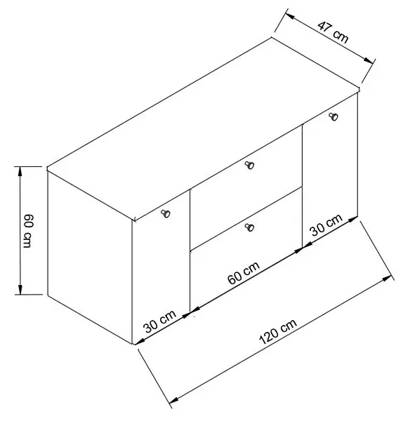 • szerokość: 120 cm, głębokość: 47 cm, wysokość: 60 cm
