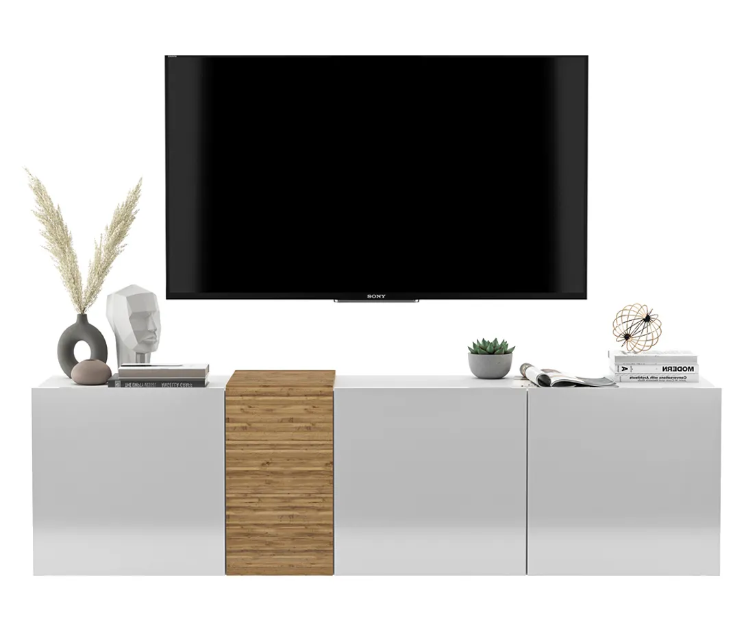 Wisząca szafka RTV w super cenie i wykonaniu. PIeknie kolory.Łątwy montaz. Praktyczne pólki z fornatmi. Możliowśc przechowywania kulku rzeczy. Super zakup.