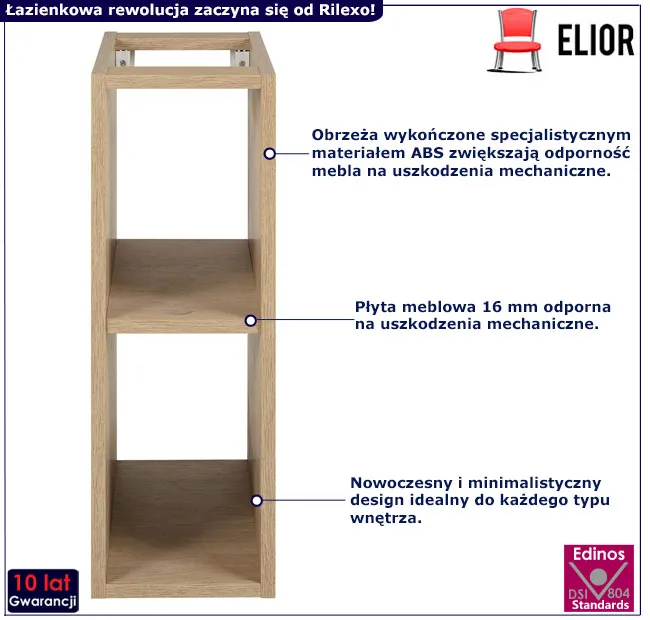 Bruno 3X marki Edinos Premium to klasa sama w sobie, przemyślana w każdym szczególe, by zaspokajać zmysły i przynosić radość funkcjonalności w codziennym użytkowaniu. Kompozycja jasnego dębu i nowoczesnego designu sprawia, że każdy dzień zaczynasz w doskonałym stylu. Przekształ swoją łazienkę w miejsce pełne harmonii z Bruno 3X od Edinos Premium – pozwól sobie na ten luksus za jedyne 248 zł.