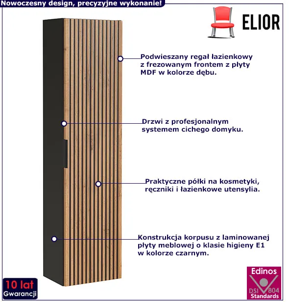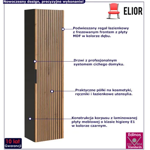 • Kolor: Dąb wotan + czarny. Sprawdź także inne szafki łazienkowe wiszące w sklepie Edinos.pl. Stwórz swój praktyczny zestaw mebli.
