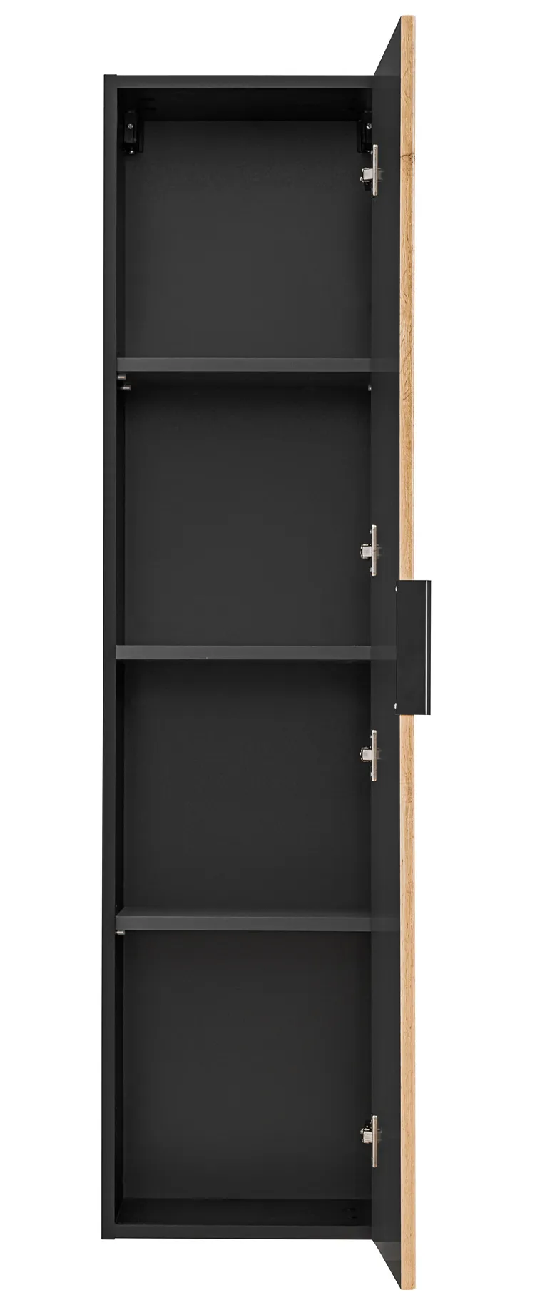 Bardzo mnie cieszy nabycie tego słupka do mojej łazienki. Czarne korpusy i fronty w kolorze Dąb wotan tworzą świetne połączenie. System domyku drzwi jest cichy i płynny, co mi się podoba, bo nie ma trzasku. Ogólnie bardzo przemyślany produkt, który świetnie się sprawdza. Porządny mebel w dobrej cenie.