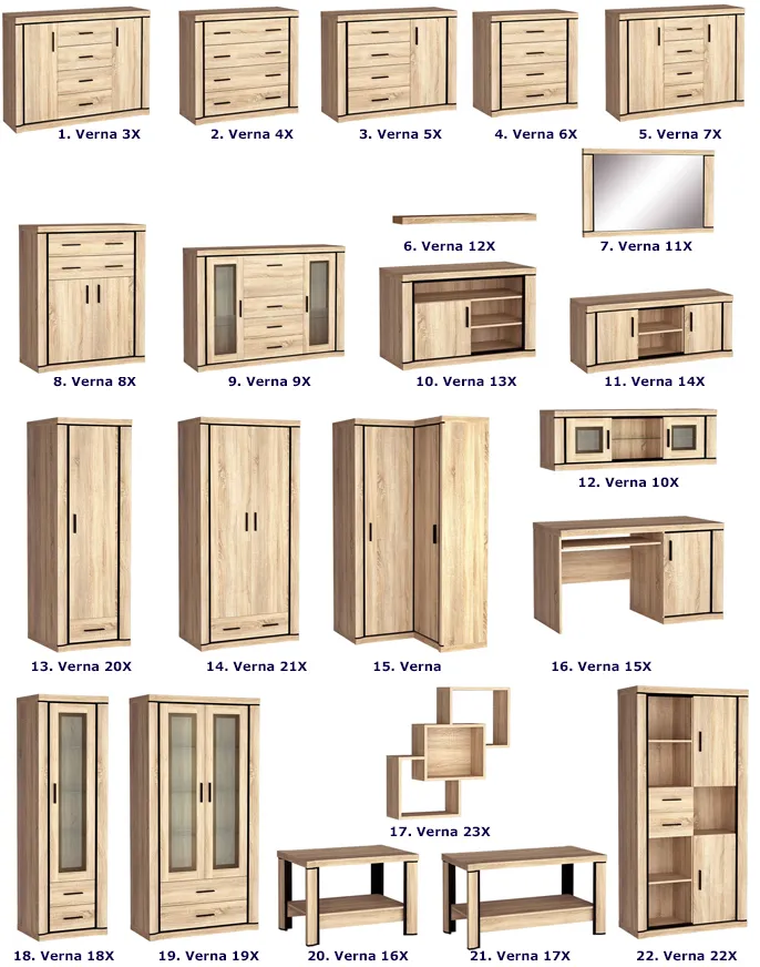 Spójrz, jak rewelacyjnie prezentuje się wybrany zestaw mebli z kolekcji Verna w przykładowej aranżacji.