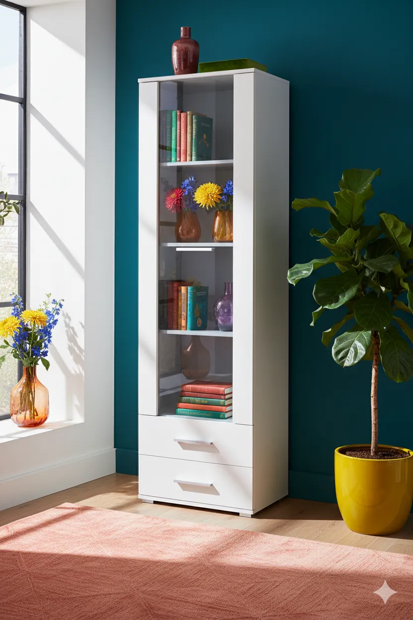 Są takie meble, które doskonale sprawdzają się w wielu przestrzeniach, Takie, które po prostu się wizualnie nie starzeją i zawsze można je łatwo zestawić z innymi elementami aranżacyjnymi. Z całą pewnością należy do nich świetnie zaprojektowany regał Kaloe C8 z przepiękną, szklaną witryną z najnowszej kolekcji marki Edinos Premium. Ten fantatsyczny mebel to kwintesencja minimalizmu i ponadczasowej klasy. Prosta forma dopełniona uniwersalnym, a zarazem jakże modnym kolorem – to musi się udać! Znakomity regał Kaloe C8 zapewnia ponadto komfort funkcjonalizm, jakich oczekujemy. Można w nim przechować najróżniejsze rzeczy w praktyczny, ale i estetyczny sposób. To wręcz idealna propozycja do designerskiego pokoju czy nowoczesnego, modernistycznego salonu.