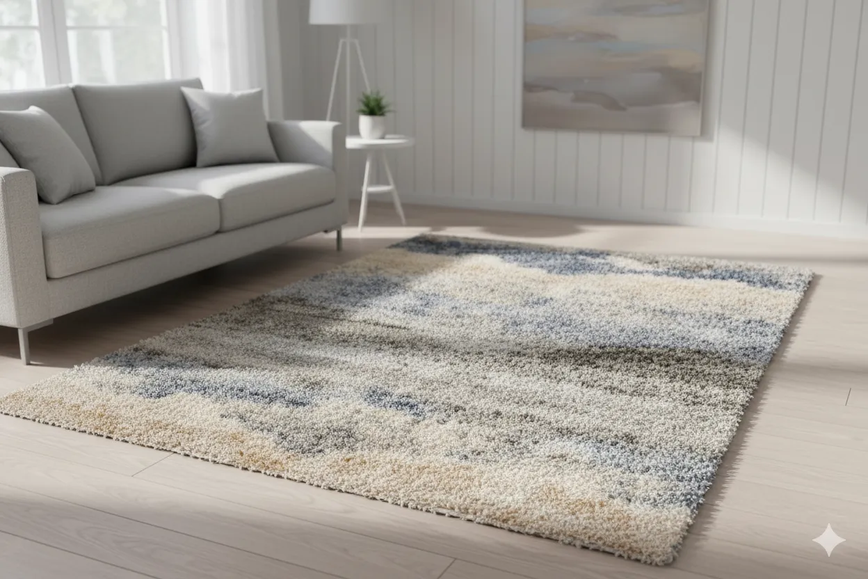 Dywan jest całkiem miękki i przyjemny pod stopami, świetnie pasuje do nowoczesnego wnętrza i dodaje przestrzeni przytulnego charakteru. Kolor niebieski wygląda naturalnie i nie dominuje pomieszczenia, a jakość materiału sprawia, że dywan bardzo ładnie się prezentuje i wydaje się solidny