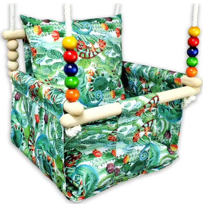 Kolorowe motywy na lince są bardzo łądne córeczka uwielbia się za nie trzymać, dzieci uwielbiają bujanie a mojej małej czasem zdarza się w niej zasnąć, może się bujać nawet całą godzinę i nie ma dość, polecam rodzicom.