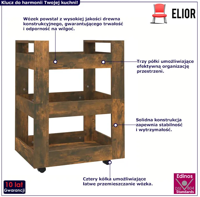 Dotyczy: Mobilny wózek kuchenny z półkami brązowy dąb - Noden
