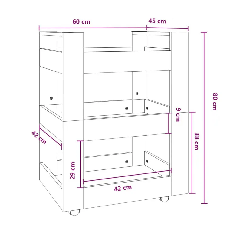 Kupiłem ten mobilny wózek kuchenny i jestem zachwycony! Wygląda świetnie w mojej kuchni dzięki eleganckiemu wykończeniu z brązowego dębu. Półki są bardzo pojemne i stabilne. Łatwo się przemieszcza dzięki kółkom, co ułatwia codzienne prace kuchenne.