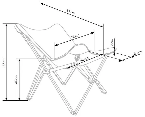 - Wysokość siedziska: 44 cm, szerokość siedziska: 66 cm, głębokość siedziska: 46 cm.