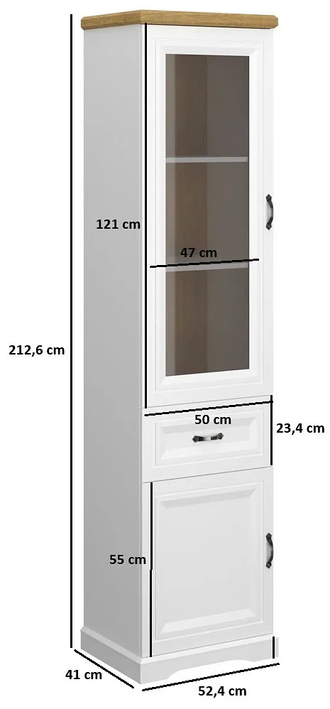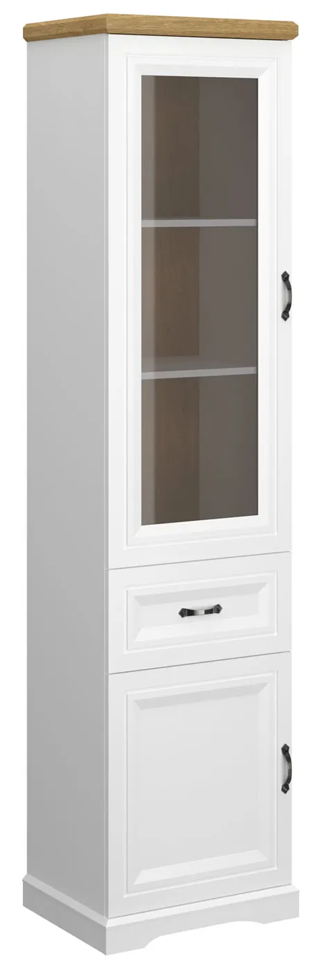 Wysoka klasyczna witryna szklana biały + dąb harbor - Epium 10X