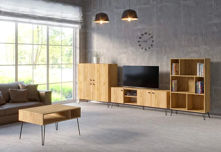Dotyczy: Industrialna komoda z czarnymi nogami dąb craft + czarny - Zorina 4X