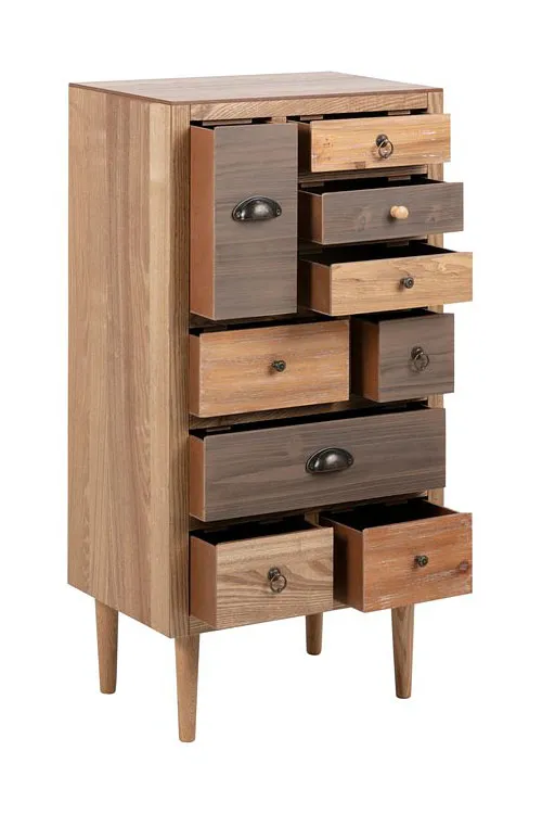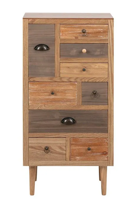 Cała kolekcja Timbo została stworzona poprzez inspirację przyrodą i naturą. Każdy element mebla charakteryzuje się barwami pochodzącymi z środowiska roślinnego - a dokładniej jest odzwierciedleniem naturalnego drewna jesionowego. Specyfiką jesionu jest jego rozmaite ubarwienie, które zostało zaprezentowane dzięki szufladom, które nieco różnią się od siebie odcieniem. Takie zalety komody pozwolą Ci na dopasowanie jej do wnętrz zaaranżowanych w stylu skandynawskim, nowoczesnym i klasycznym. Meble są bardzo ważne we wnętrzu każdego domu. Pozwalają stworzyć przyjemną atmosferę wypełniając pustą przestrzeń, a także sprawiają, że organizacja domowej powierzchni staje się o wiele łatwiejsza. Liczna ilość szuflad o różnych rozmiarach to możliwość znalezienia odpowiedniego miejsca na ubrania, dokumenty lub drobiazgi w każdym rozmiarze. Dzięki tak ustrukturalizowanemu przechowywaniu swoich rzeczy zawsze znajdziesz to czego szukasz! Ustawiając mebel w sypialni, salonie czy przedpokoju wprowadzisz nie tylko porządek i ład, ale również stworzysz praktyczną dekorację pomieszczenia.
