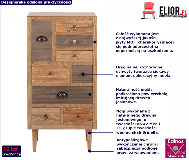 • Modny kolor: jesion. Zobacz także inne komody w stylu skandynawskim w ofercie sklepu Edinos.pl i skomponuj swój wymarzony zestaw mebli.