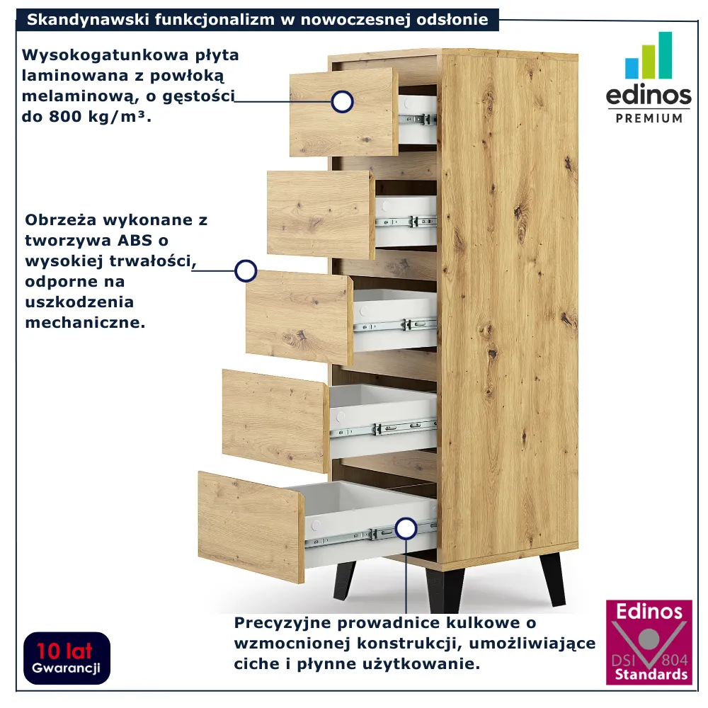 Dotyczy: Wysoka biała komoda z 5 szufladami - Bilgo 6X