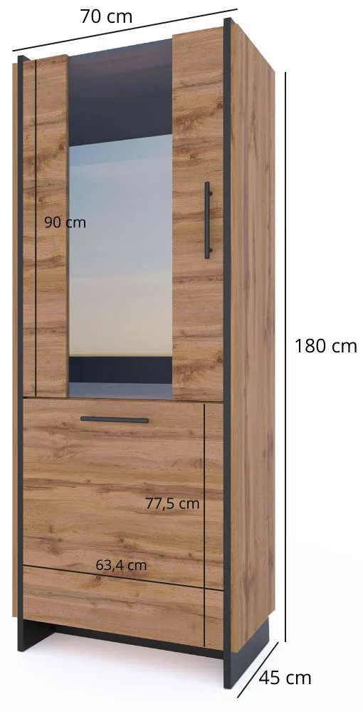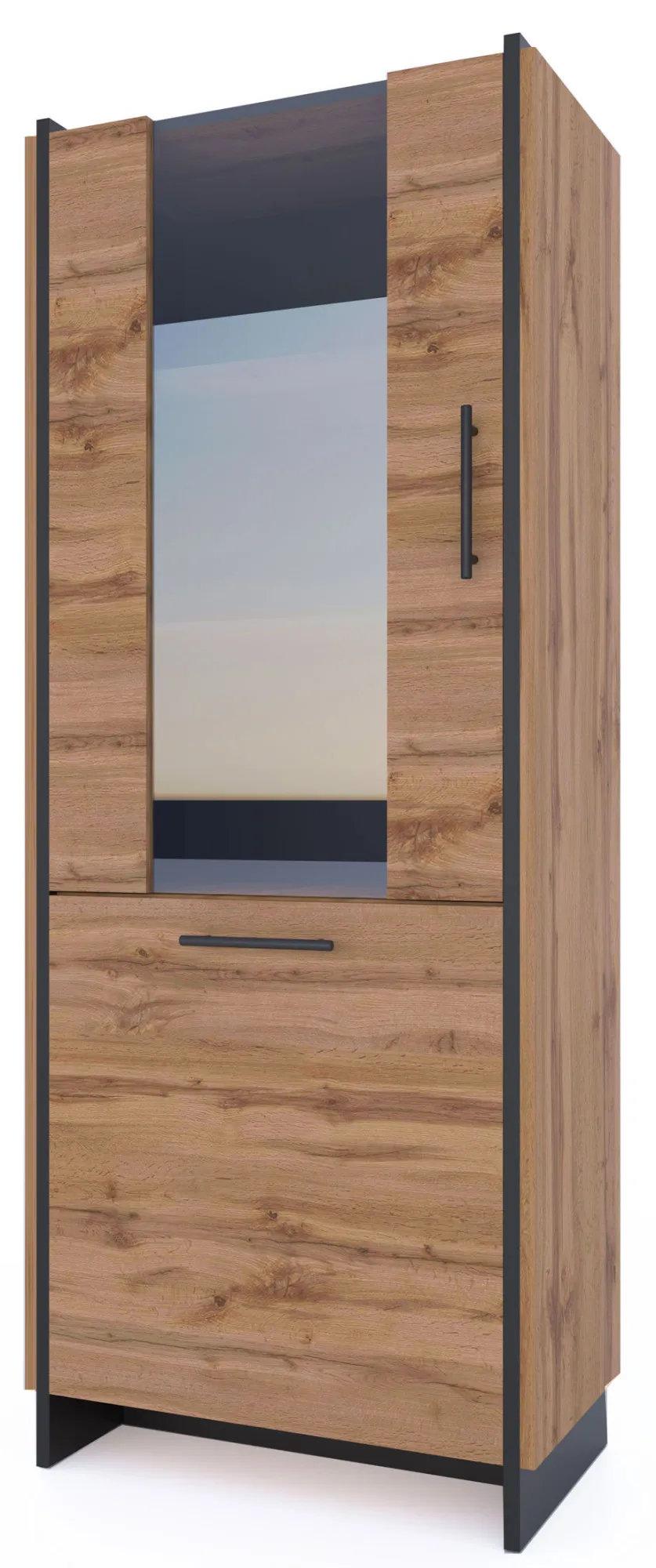 Wysoka szklana witryna do salonu i jadalni dąb wotan + czarny - Fellia 15X