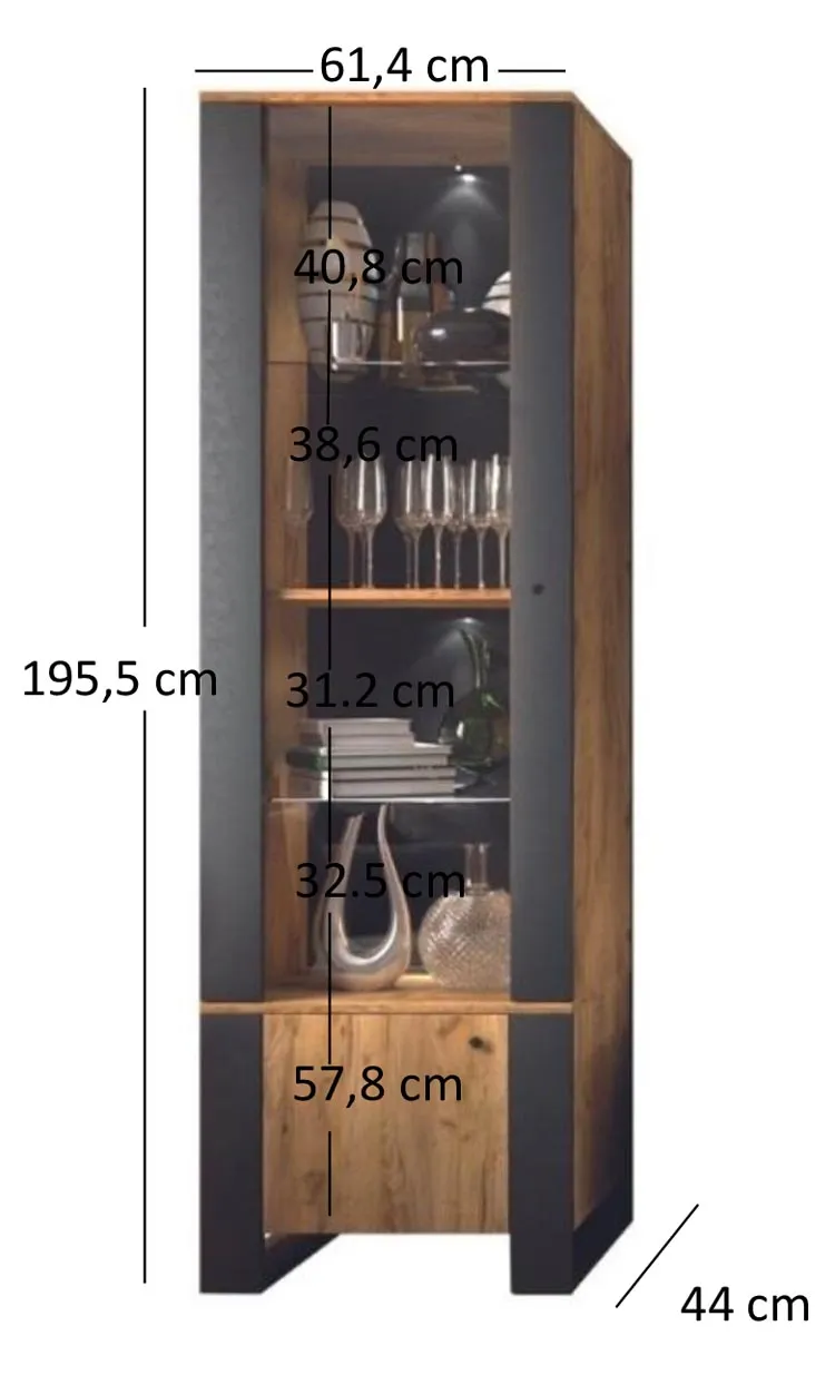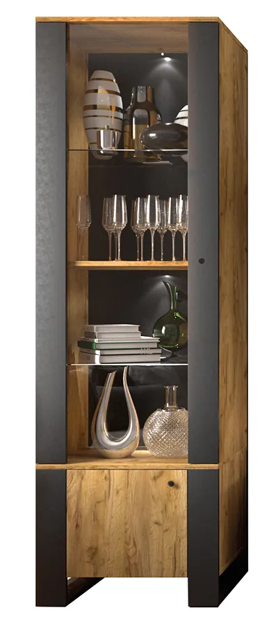 Wysoka witryna słupek z półkami i szafką - Luso 10X