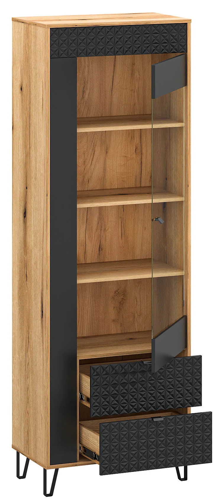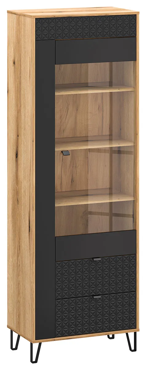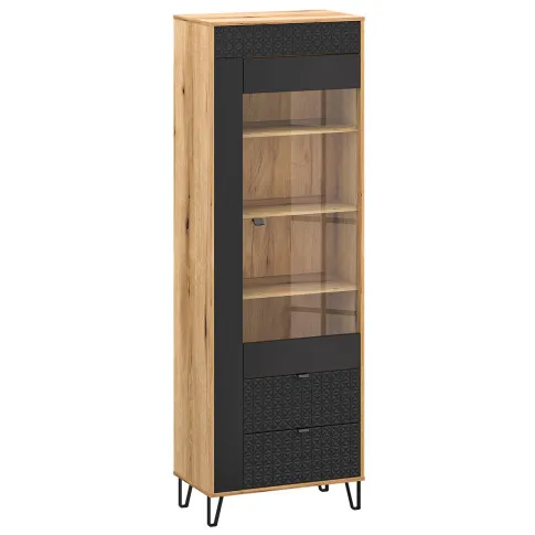 Wysoka witryna szklana na nóżkach dąb evok + czarny - Eccio 12X
