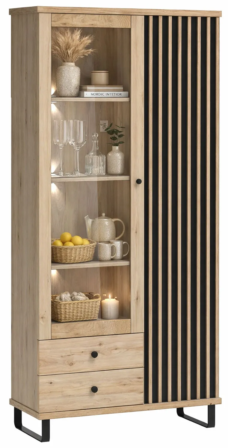 Kolekcja Fallon marki Edinos Premium to absolutny majstersztyk wśród nowoczesnych projektów designerskich. Projektując serię Fallon postawiliśmy na jakość, funkcjonalizm i nietuzinkowe wzornictwo. Efekt przerósł nasze oczekiwania i dlatego z dumą prezentujemy kolejny model serii Fallon. Dwudrzwiowa witryna Rovel 4X wyróżnia się nie tylko unikatowym designem, ale także walorami użytkowymi. Mebel powstał z najwyższej jakości 16 mm laminowanej płyty meblowej o klasie higieny E1. Obrzeża zostały precyzyjnie oklejone specjalistycznym tworzywem ABS o zwiększonej odporności na ścieranie i wilgoć. Drzwi zamontowane na 35 mm zawiasach puszkowych, regulowanych w 3 płaszczyznach otwierają się i zamykają lekko i bezszelestnie, dzięki zastosowaniu systemu cichego domyku Blumer 4X Plus. Przestronne wnętrze witryny zostało zorganizowane w wyjątkowo funkcjonalny sposób. W jednej części znajdują się 3 pojemne półki na porcelanę, szkło, serwis obiadowy. Drugą część wyposażyliśmy w 2 szuflady oraz 3 półki z opcją oświetlenia LED, ukryte za przeszklonymi drzwiami. Stabilne metalowe nogi w kolorze matowej czerni dodają witrynie wizualnej lekkości i ułatwiają utrzymanie porządku, eliminując problem zbierającego się pod meblami kurzu w pomieszczeniu. Tak wykonana witryna Rovel 4X zapewni wystarczająco dużo miejsca do przechowywania i genialnie wystylizuje każde wnętrze. A to przecież to jeszcze nie wszystkie zalety tego wybitnego modelu. Sprawdź czym jeszcze wyróżnia się witryna Rovel 4X marki Edinos Premium!