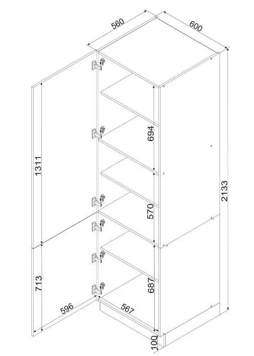 • Wymiary całkowite: wysokość: 213,3 cm, szerokość: 60 cm, głębokość: 56 cm.