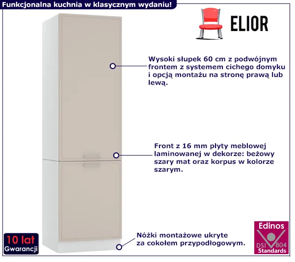 • Modny kolor: front: Beżowy szary mat, korpus: szary.