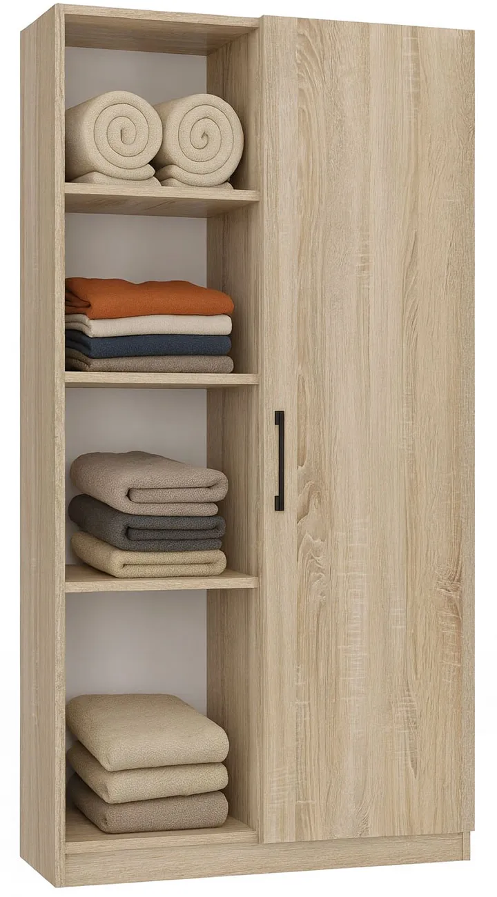 Poznaj praktyczny mebel, który doskonale zadba o porządek w Twojej przestrzeni — elegancki regał Nodino marki Elior przeznaczony do przechowywania ubrań i tekstyliów. Niezwykle funkcjonalny, wyjątkowo stylowy i idealnie dopasowany do codziennych potrzeb, sprawdzi się w sypialni, garderobie, pokoju młodzieżowym czy przedpokoju. Otwarta część regału pozwala wygodnie ułożyć najczęściej używane elementy garderoby, natomiast przestrzeń zamknięta za drzwiami dodaje prywatności oraz pomaga utrzymać schludny wygląd wnętrza. To Ty decydujesz, jak wykorzystasz jego półki i jaką rolę regał Nodino odegra w Twoim domowym rytmie.