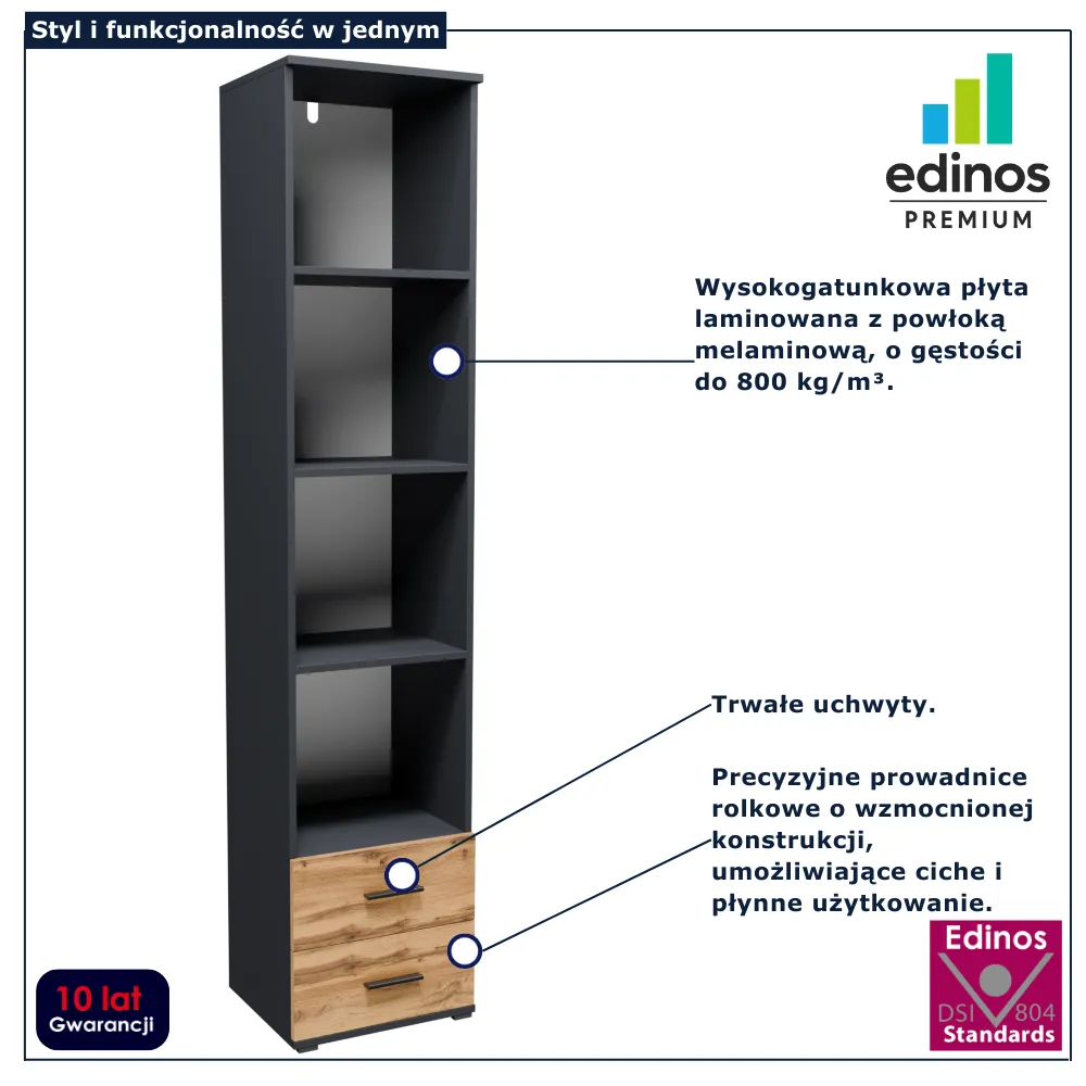 Wysoki regał słupek z 2 szufladami grafit + dąb wotan - Asendri 9X