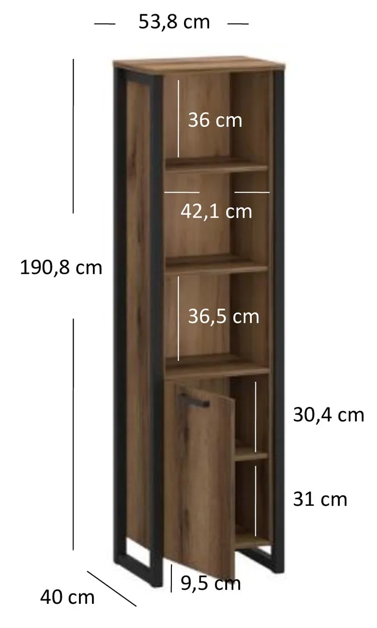 • Wymiary: szerokość: 53,8 cm, wysokość: 190,8 cm, głębokość: 40 cm.