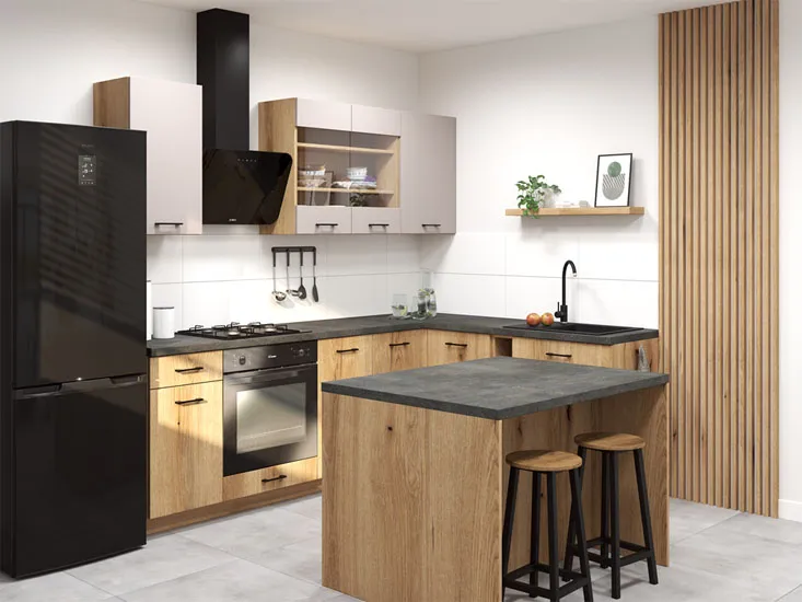 Wyspa kuchenna z blatem dąb evoke + czarny - Perdix
