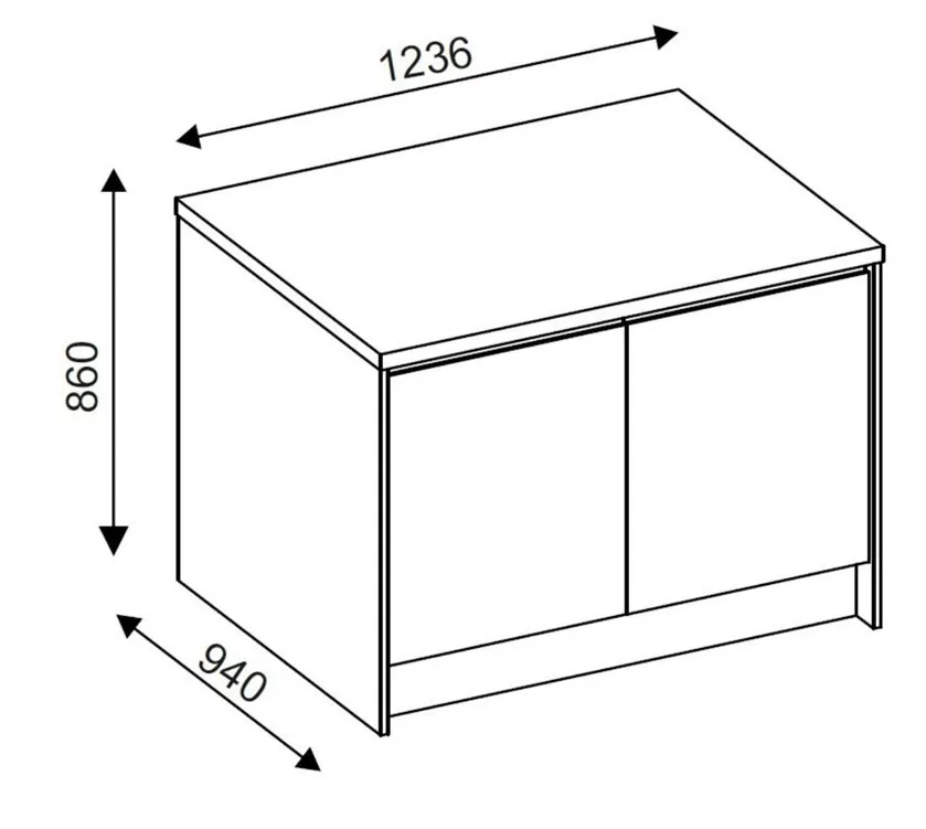 Wymiary: głębokośc: 94 cm, szerokość: 123,5 cm, wysokość: 86 cm.