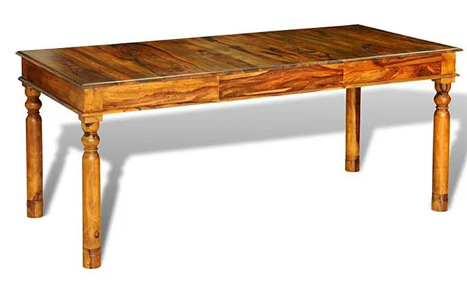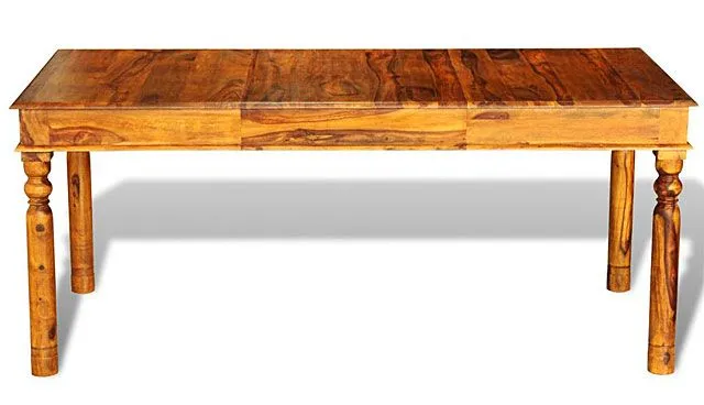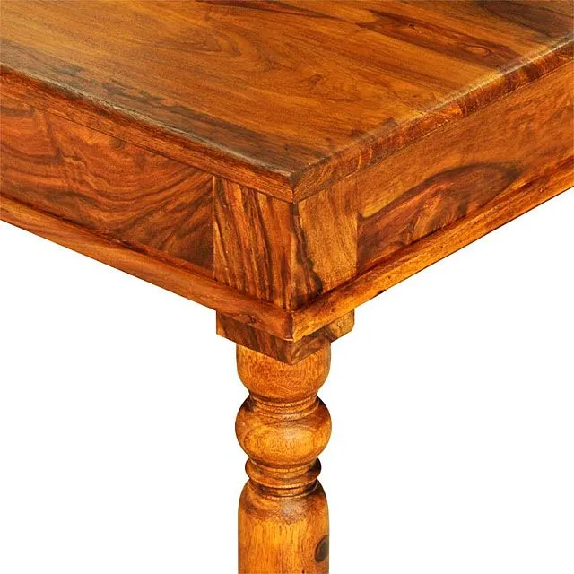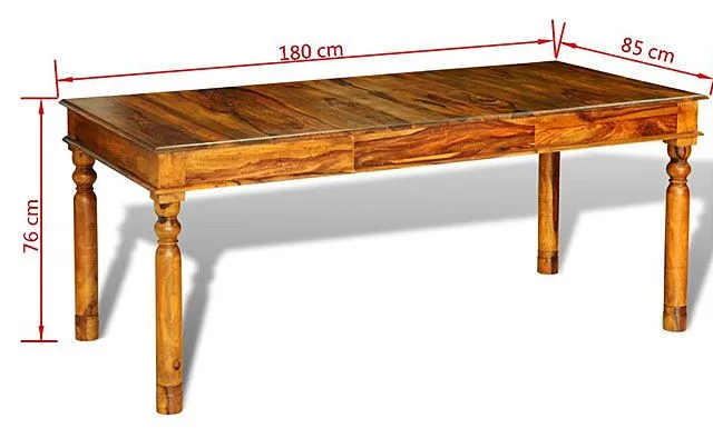 Wyjątkowy element stołu Rella stanowią nogi ozdobione okrągłymi rzeźbieniami w górnej części tuż pod blatem. Postawne i wytrzymałe, niczym kolumny, zapewnią meblowi stabilność i idealną równowagę. Projekt blatu również zasługuje na zauważenie i podkreślenie: gruby, ukształtowany starannie podczas ręcznej obróbki i wypolerowany do idealnej gładkości, zyskał dodatkową zgrabność przez wystające dekoracyjnie krawędzie górnej i dolnej „warstwy”. Palisandrowy stół Rella jest idealnym wyborem dla tych, którym w szczególny sposób zależy na oryginalności wystroju. Drewno to gwarantuje bowiem niepowtarzalność każdego egzemplarza – natura sprawiła, że każdy kawałek ma inne usłojenie, wiedzie wzrok ku innym wzorom na powierzchni. Poza tym, dajemy Ci aż 10 lat gwarancji na nasze meble, więc czemu już dziś nie zamówić tego wyjątkowego mebla i nie dodać iście królewskiego smaku w Twoim mieszkaniu?