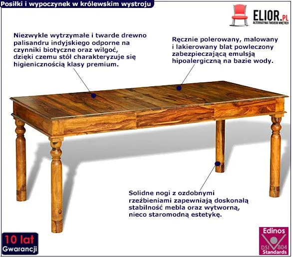• Królewska jadalnia, wytworny salon, elegancka kuchnia? Ty zdecyduj, gdzie go umieścisz - to wspaniały stół, który uświetni posiłki i piękna, funkcjonalna ozdoba salonu - zobacz tez inne drewniane stoły w sklepie Edinos.pl - na pewno znajdziesz coś dla siebie!