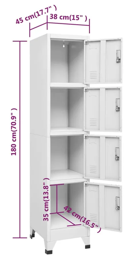 • zamykane schowki – każda przegroda posiada drzwi z zamkiem na klucz, co zapewnia bezpieczeństwo przechowywanych przedmiotów.