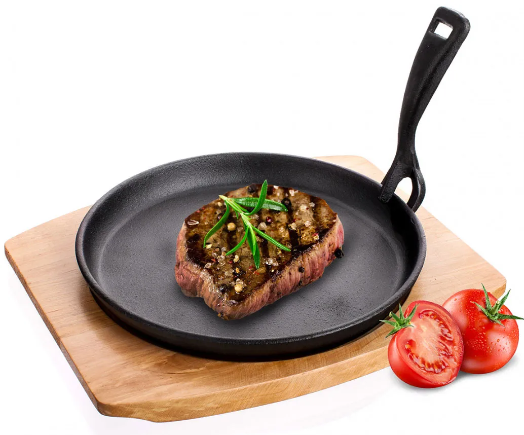 Żeliwna patelnia z odpinaną rączką i drewnianą deską 22cm - Valis 10X