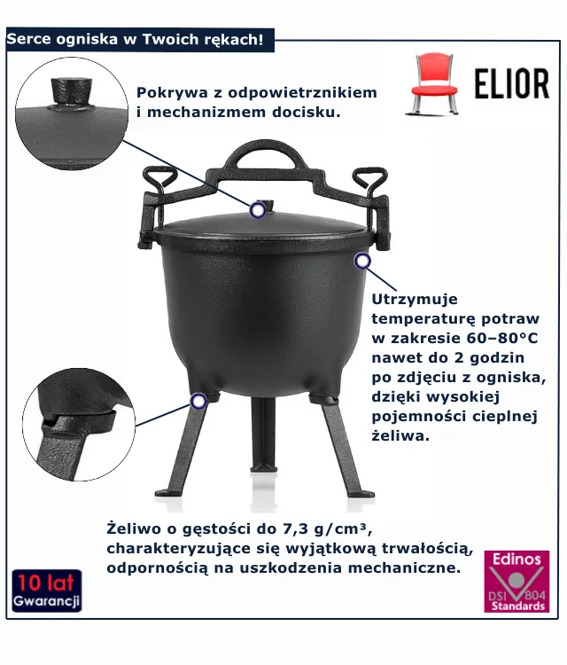 Kociołek żeliwny Astem 4X marki Edinos Premium to inwestycja na lata, która odmieni Twoje gotowanie na świeżym powietrzu. Niezależnie od tego, czy planujesz letni piknik, jesienną biesiadę, czy zimową ucztę przy kominku – ten kociołek sprawdzi się w każdej sytuacji. Dlaczego by nie sprawić sobie odrobiny kulinarnej wolności? Ciesz się smakiem prawdziwej przygody za jedyne 268zł!