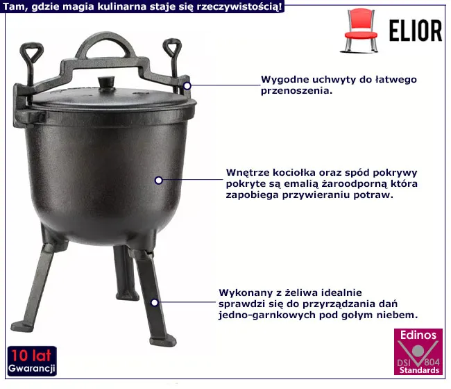 • idealny do przygotowywania dań jedno-garnkowych na świeżym powietrzu