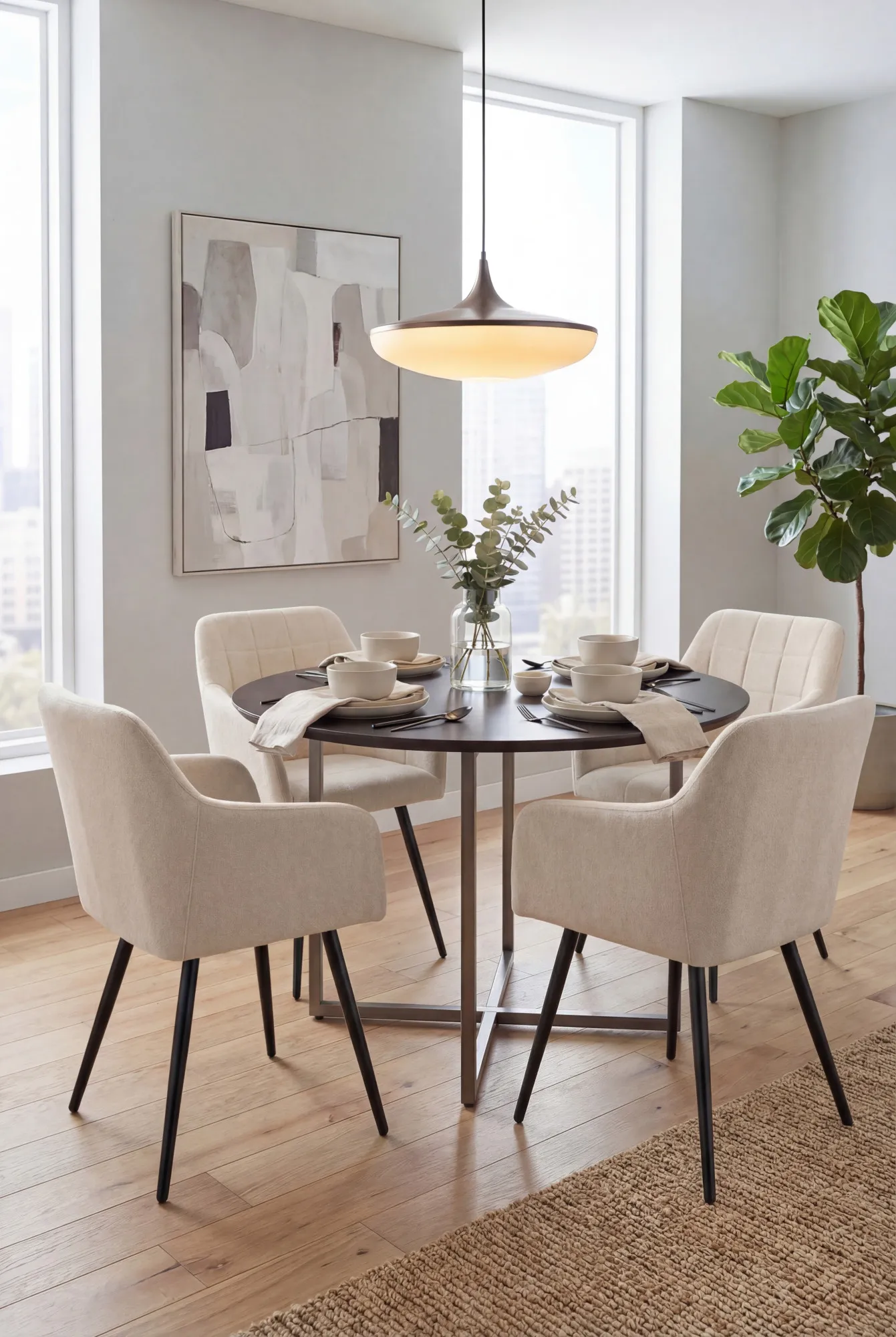 Aranżacja jadalni z beżowymi krzesłami Cormelis 3X