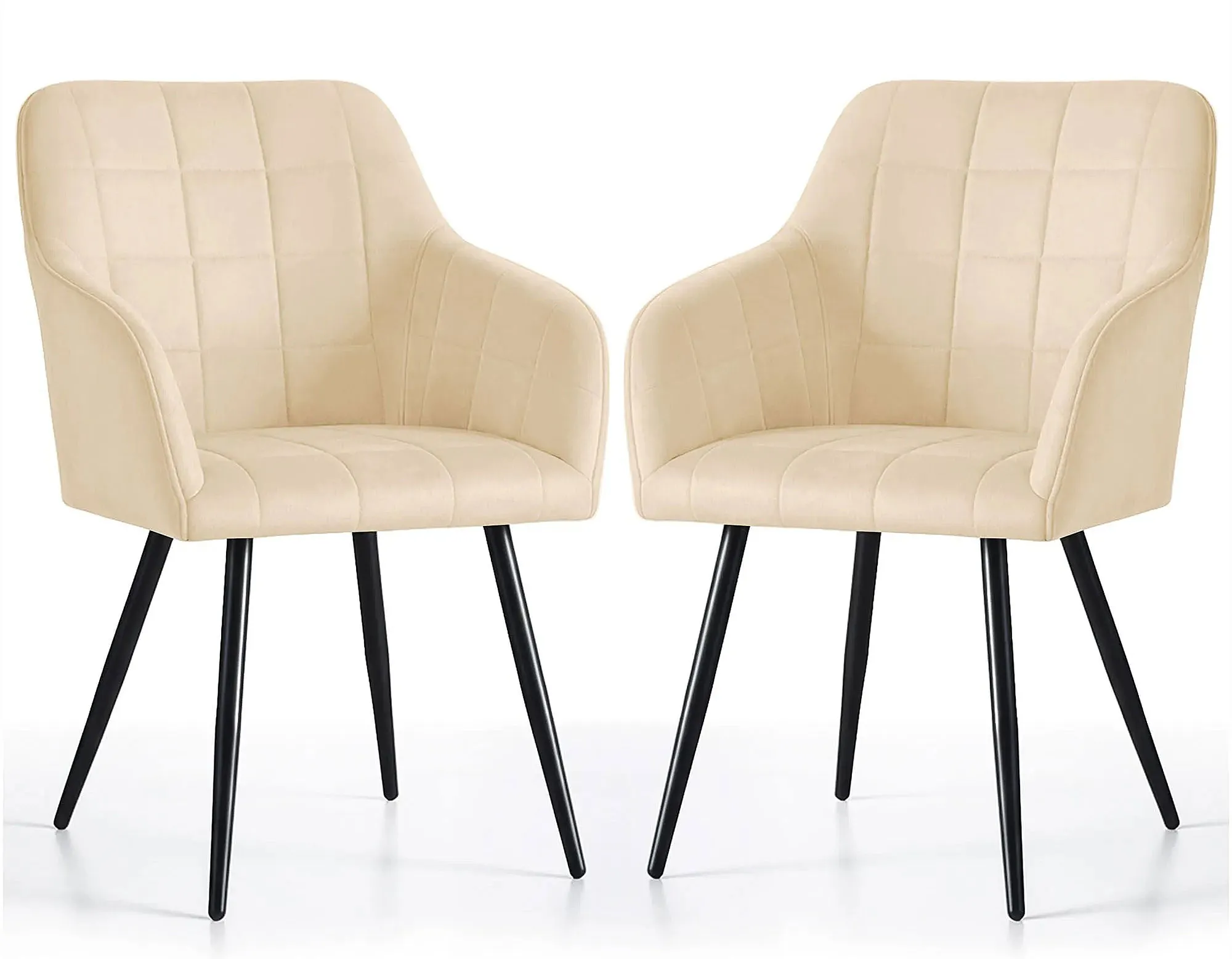 Zestaw 2 beżowych welurowych krzeseł pikowanych - Cormelis 4X