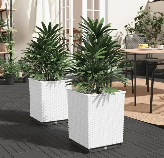 • Trwały materiał: wykonane z wytrzymałego tworzywa donice są nie tylko lekkie i łatwe w obsłudze, ale także odporne na wszelkie warunki atmosferyczne, zapewniając Twoim roślinom doskonałe warunki do wzrostu.
