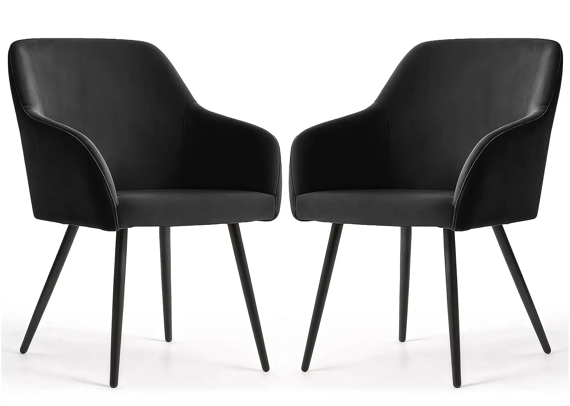 Zestaw 2 czarnych welurowych krzeseł kubełkowych - Terviso 2X