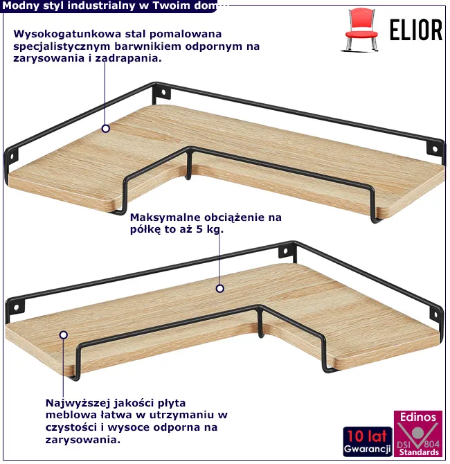 Dotyczy: Loftowy zestaw 2 ściennych półek narożnych rustykalny brąz - Eblo