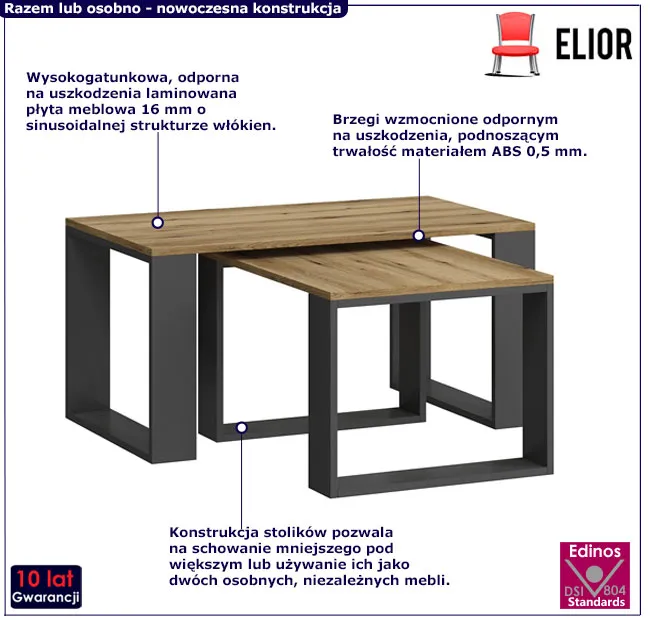 • inteligentna konstrukcja umożliwia schowanie mniejszego stolika pod większym, co jest idealnym rozwiązaniem oszczędzającym przestrzeń