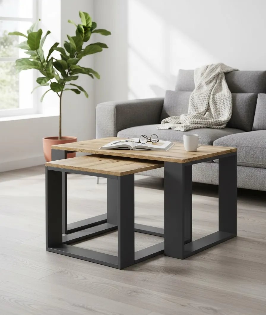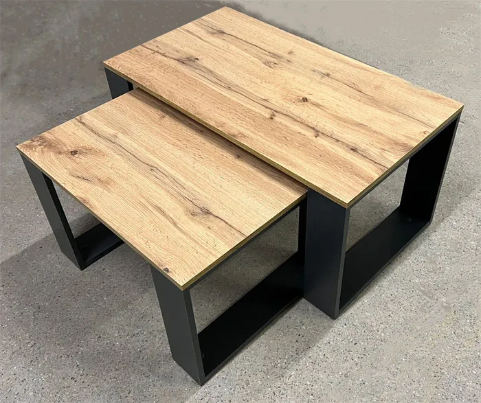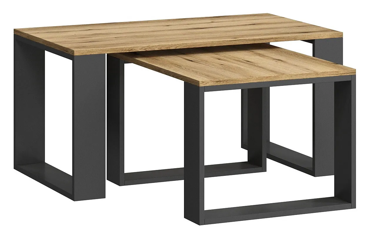 Zestaw 2 prostokątnych stolików antracyt + dąb wotan - Avika