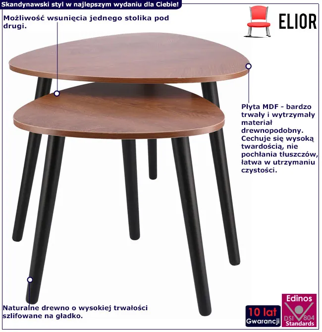 Zestaw 2 stolików skandynawskich brązowy + czarny - Flavor