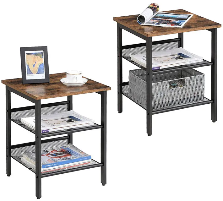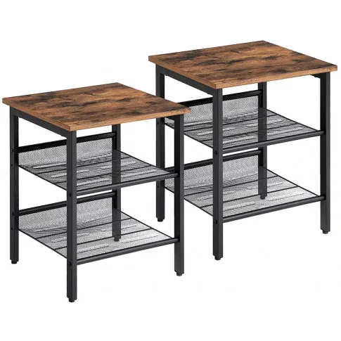 Zestaw 2 sztuk loftowych szafek nocnych z 2 półkami - Negro