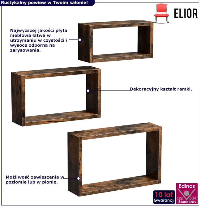 • Modny kolor: rustykalny brąz. Kliknij w link i sprawdź także inne zestawy półek w sklepie Edinos.pl. Stwórz swój praktyczny zestaw mebli.